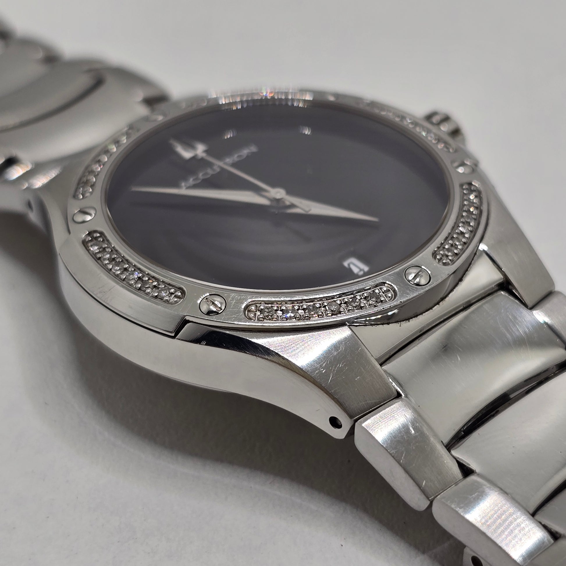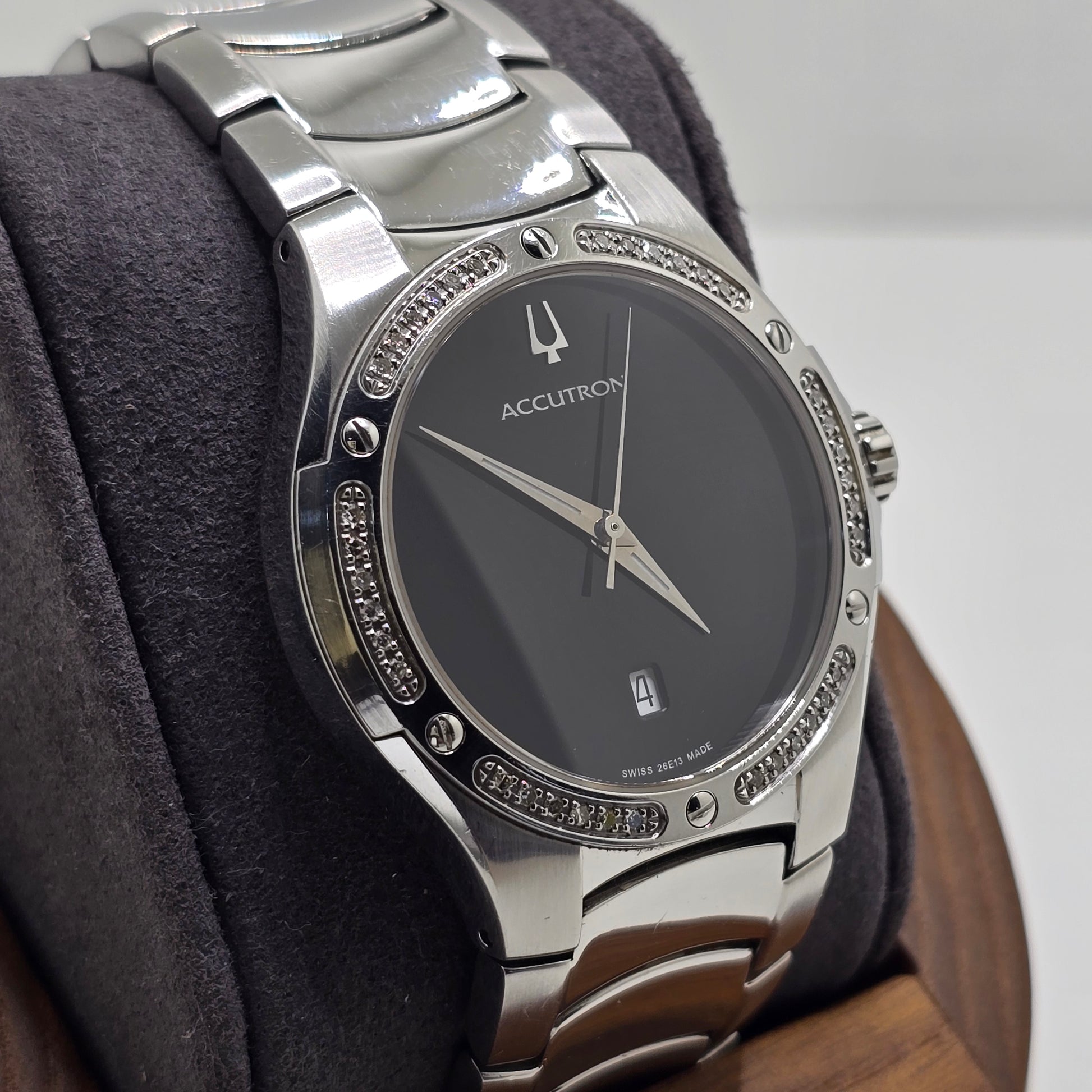 This Bulova Accutron features a genuine diamond set bezel showcasing real diamonds embedded in a polished stainless steel frame. With a sophisticated 39mm case and reliable quartz movement, this watch offers both luxury and precision. The watch is in very good condition, fully functional, and comes with a 6 month warranty for added peace of mind.