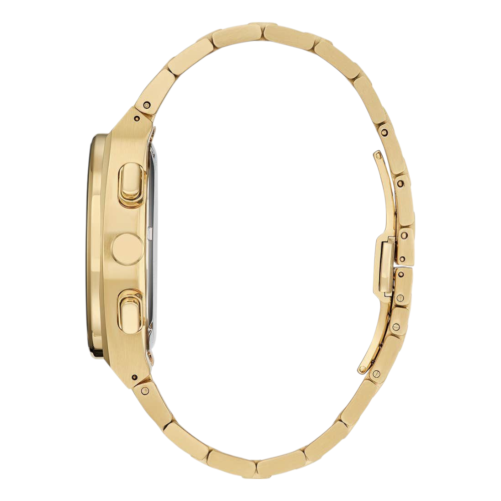 * Bracelet: Gold-tone stainless steel with push-button deployment clasp