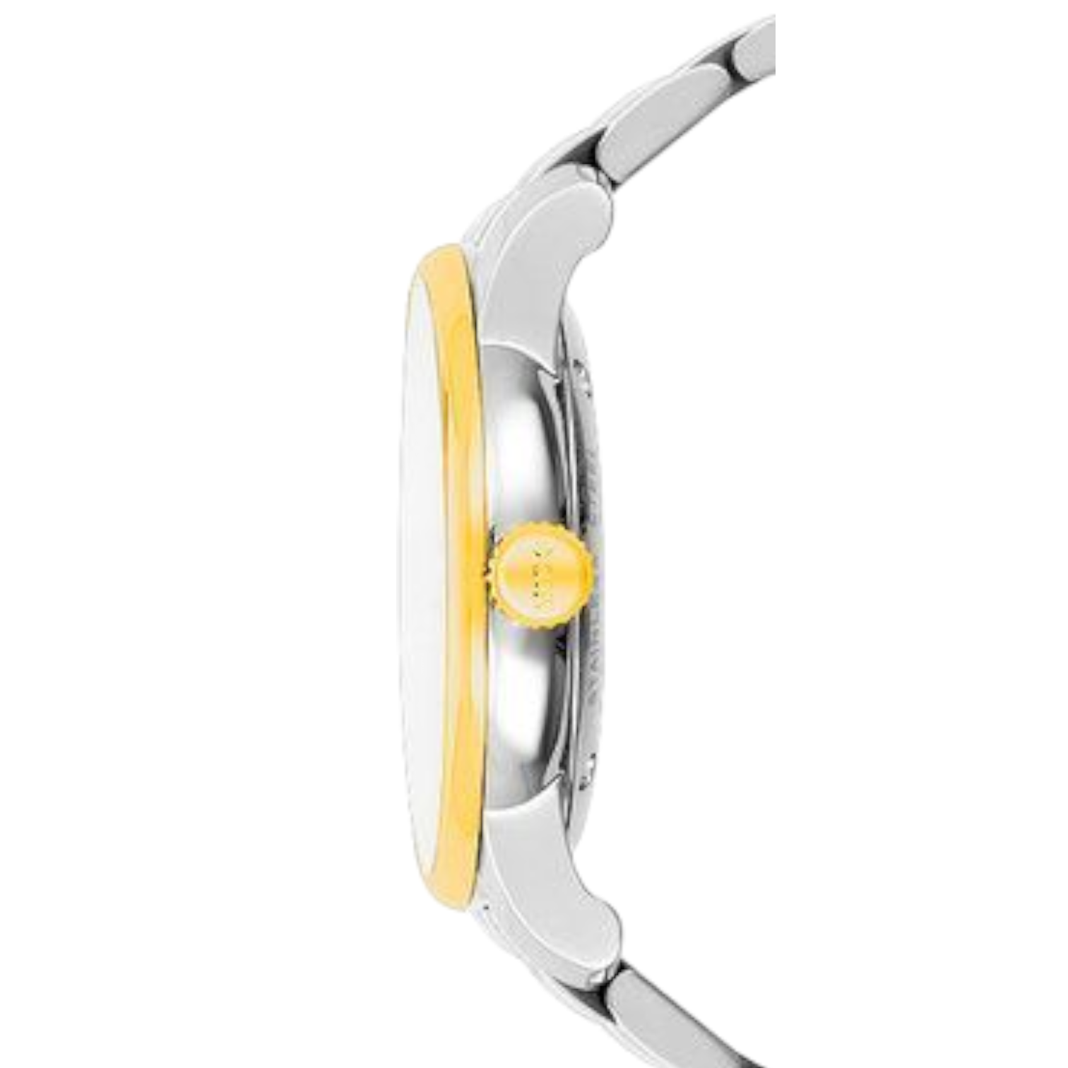 Case material: Stainless steel with gold-tone PVD accents (two-tone)