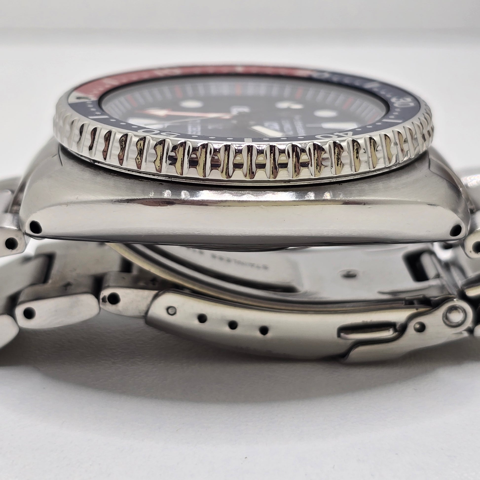 Caseback: Screw-down, engraved with “Scuba Diver’s” wave logo
