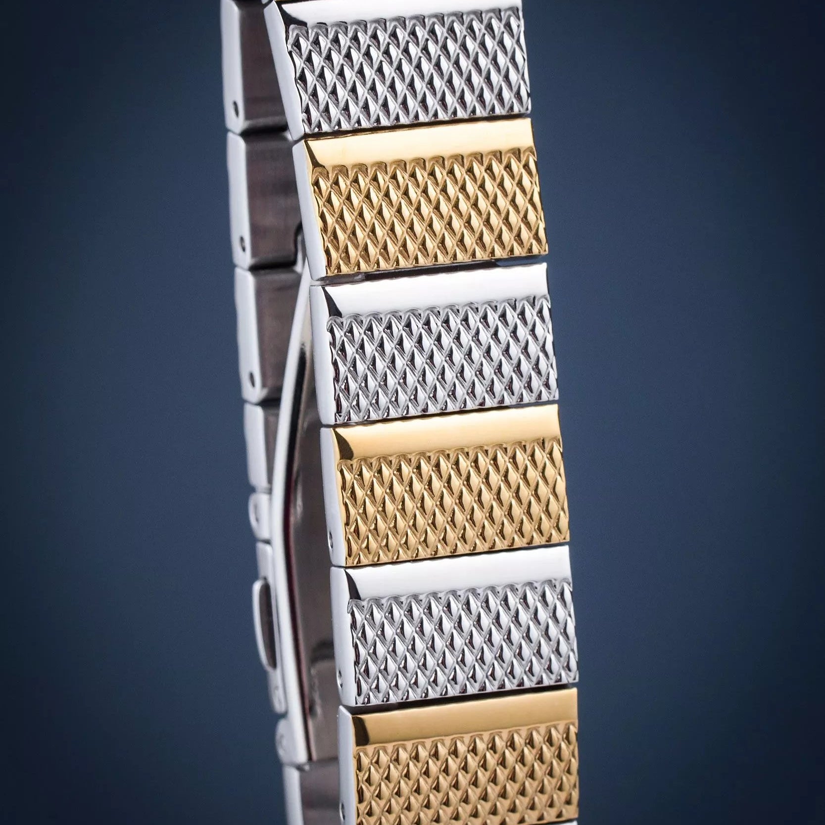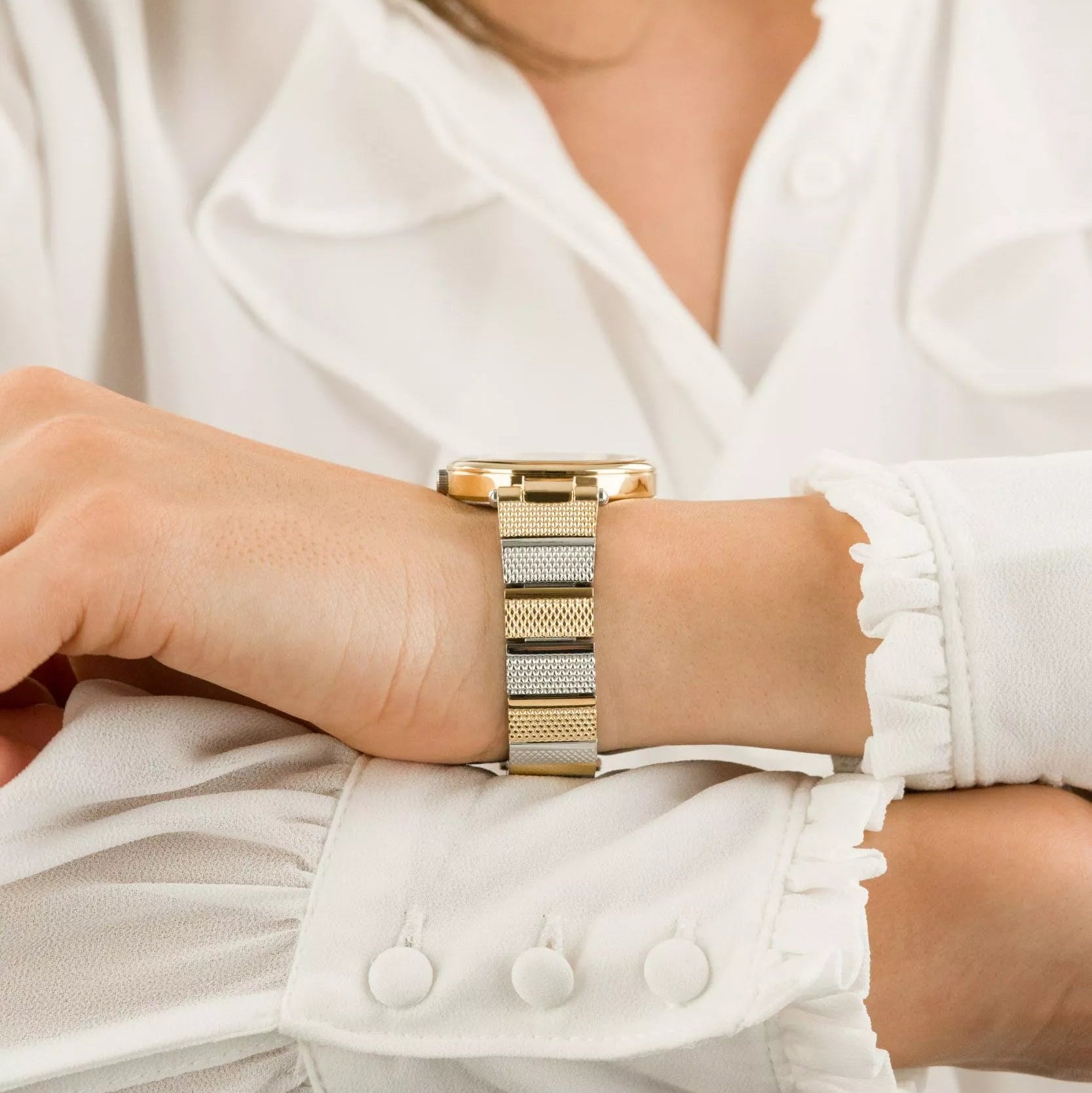 * Bracelet/strap material: Stainless steel, two-tone silver and gold tone
