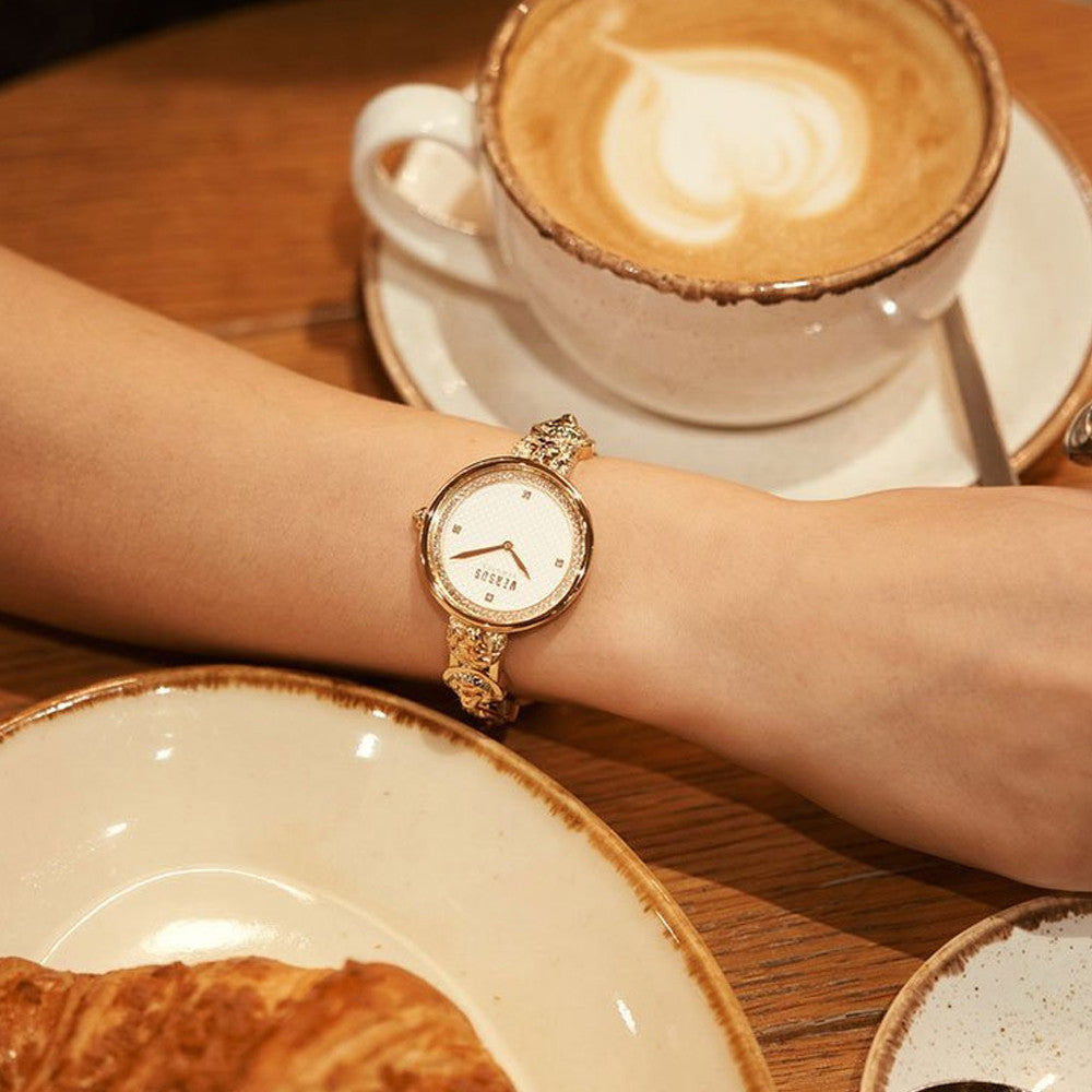 * Case material: Stainless steel, two-tone silver and gold tone
